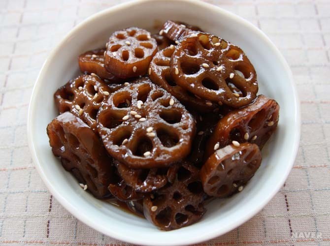 ① 연근 조림 : 연근을 세척을 한 뒤에 껍질을 벗겨 주세요. 그리고 냄비에 물을 담고 연근을 푹 익혀 주시고 물기를 빼주세요. 냄비에 물기를 뺀 연근을 다시 넣은 후 양념장을 만들고 볶아주시되 국물이 거의 없어질 때까지 조리를 해주시는 것이 좋습니다.