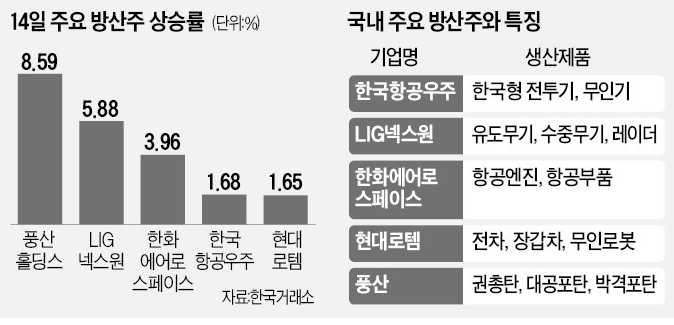 LIG넥스원, 한국항공우주, 현대로템, 풍산과 함께 대표적인 방산주이기도 하고