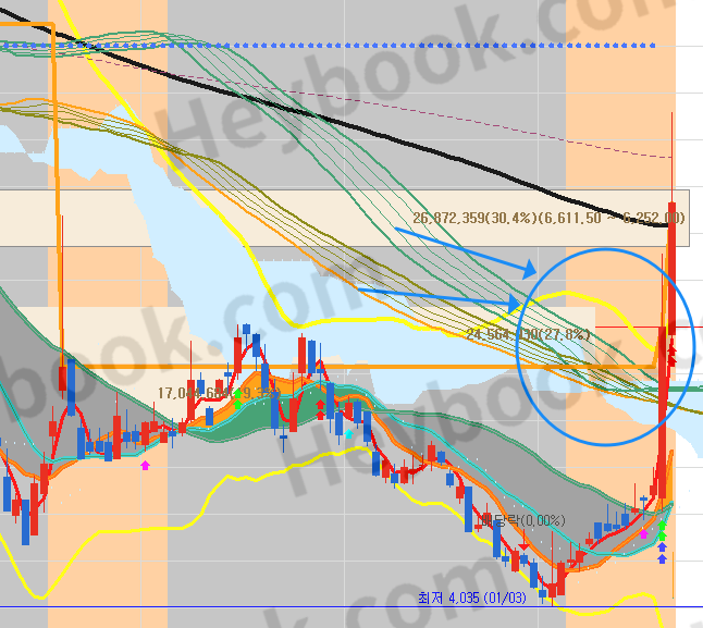 일단 그물망 물결이 겹치면 주가는 90% 확률로 상승한다.
