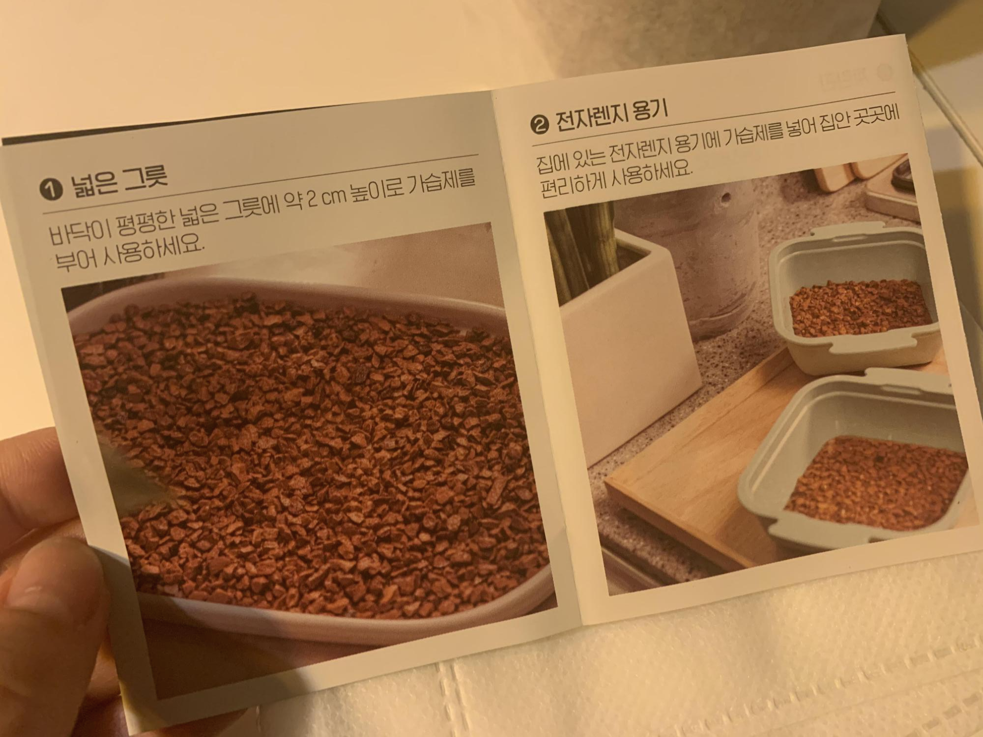 파우치를 개봉해서 가습제품을 넓은 쟁반이나 트레이에 부어주세요!