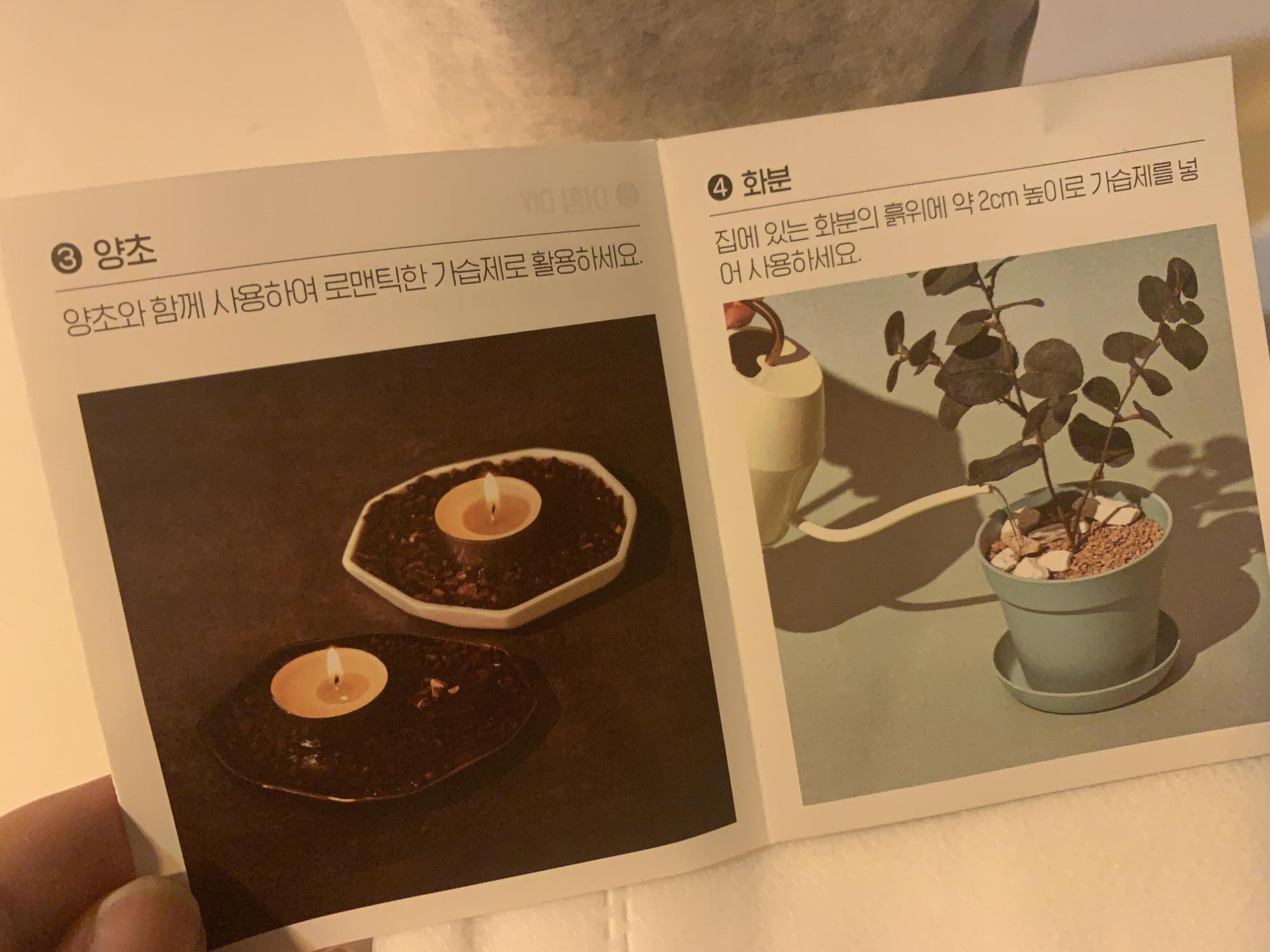 그래서 물을 부어주면 천연 가습효과를 누릴 수 있다고 합니다.