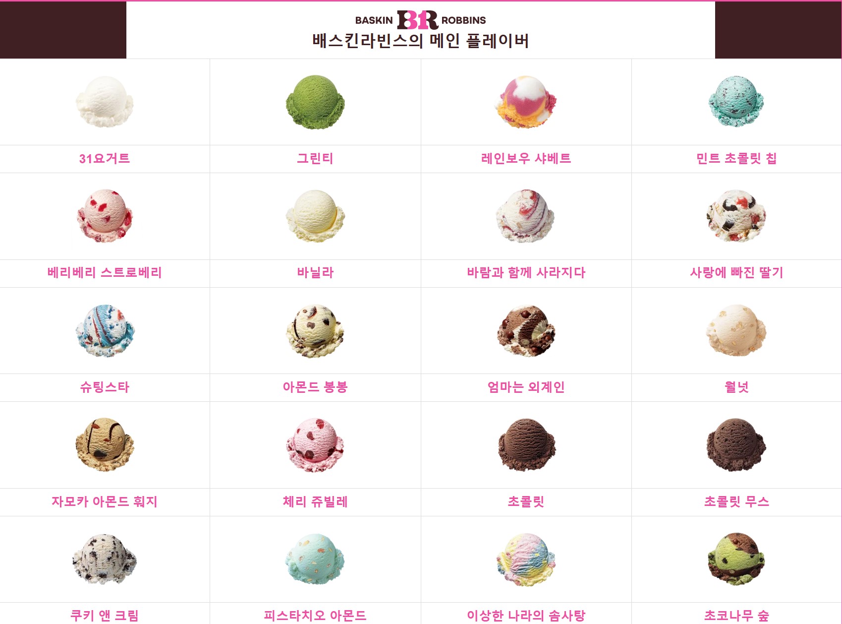3. 배스킨 라빈스(Baskin Robbins) 메인 플레이버들은 어떤 맛일까?