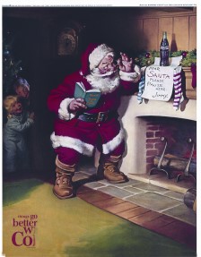 코카콜라는 1930년대부터 빨갛고 하얀 옷 입은 산타가 등장하는 산타클로스 광고로