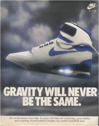 1987년에 에어 쿠셔닝 기술을 강조했던 에어 맥스 출시와 함께 나이키는