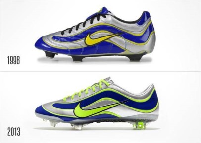 1998년 프랑스 월드컵에서 나이키는 호나우두에게 머큐리얼 베이퍼를 후원했으며