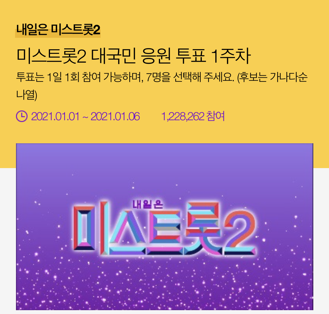 다음 검색창에서 미스트롯2를 검색하시면 상단에 바로 투표배너가 나옵니다.