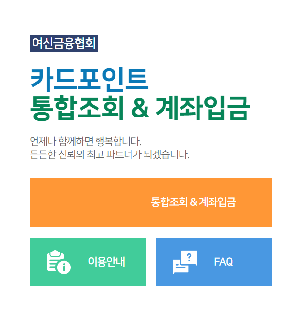 오늘은 여신금융협회부터 카드포인트 통합조회, 내 카드 포인트 관련 키워드에 관해서 알아보겠습니다.