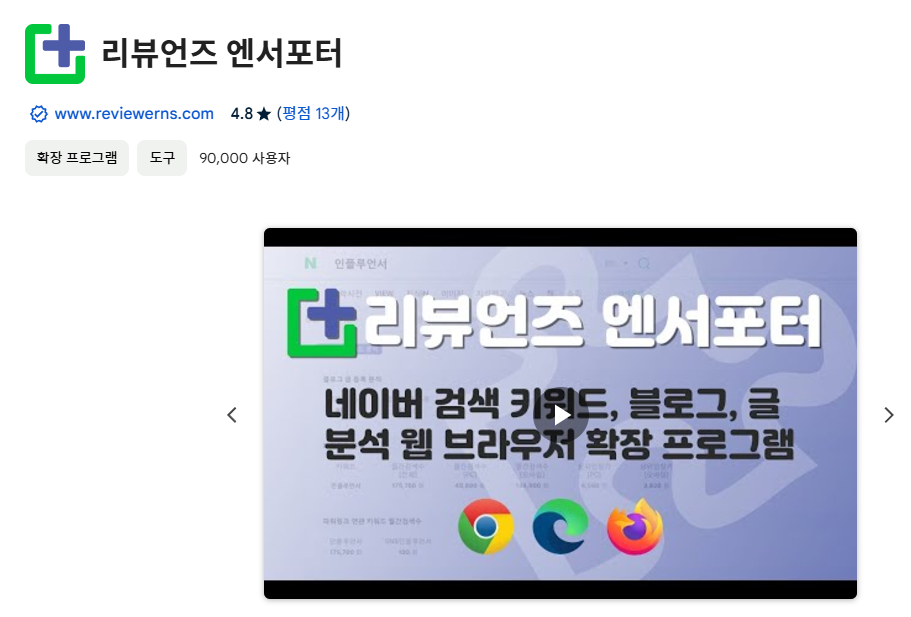 - 설치: 크롬 웹 스토어에서 "Reviewns & Supporter" 검색 후 설치.