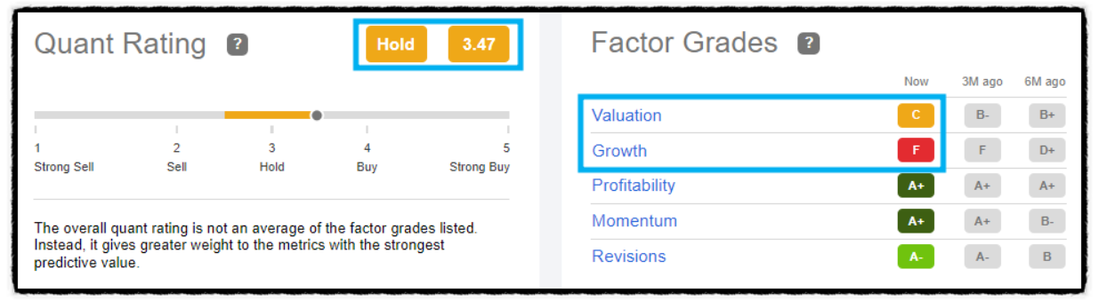 전반적 퀀트 점수는 3.47로 현재 보유 평가를 받고 있습니다.