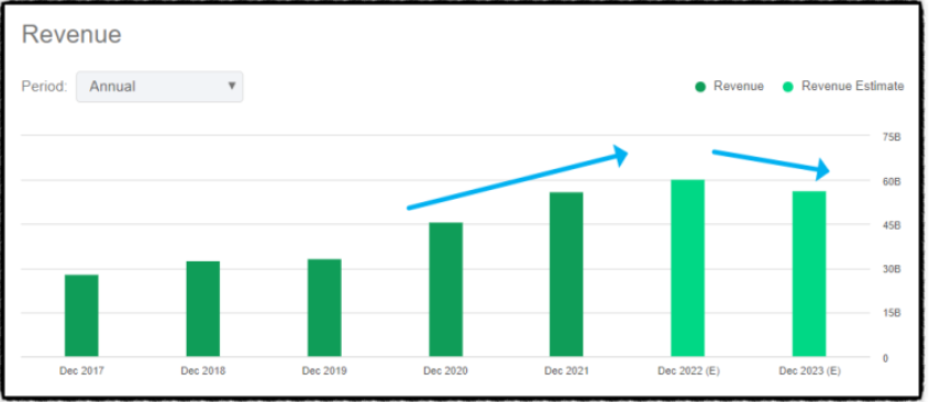 2020년 이후 차례로 37.69%, 22.69%의 매출이 증가하여 주가가 크게 상승합니다.