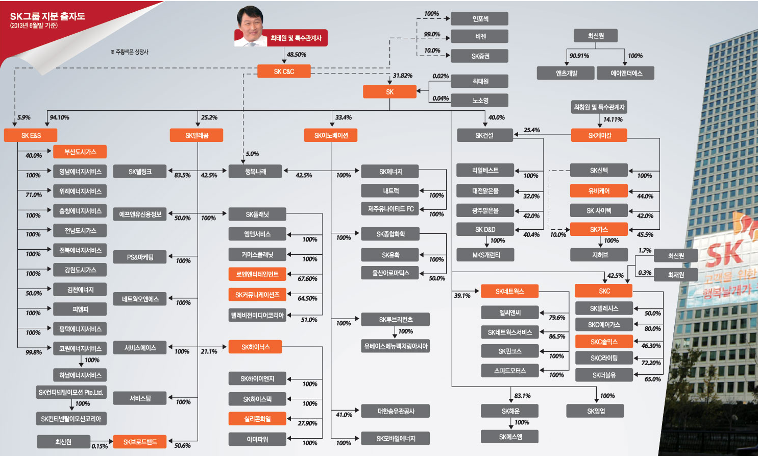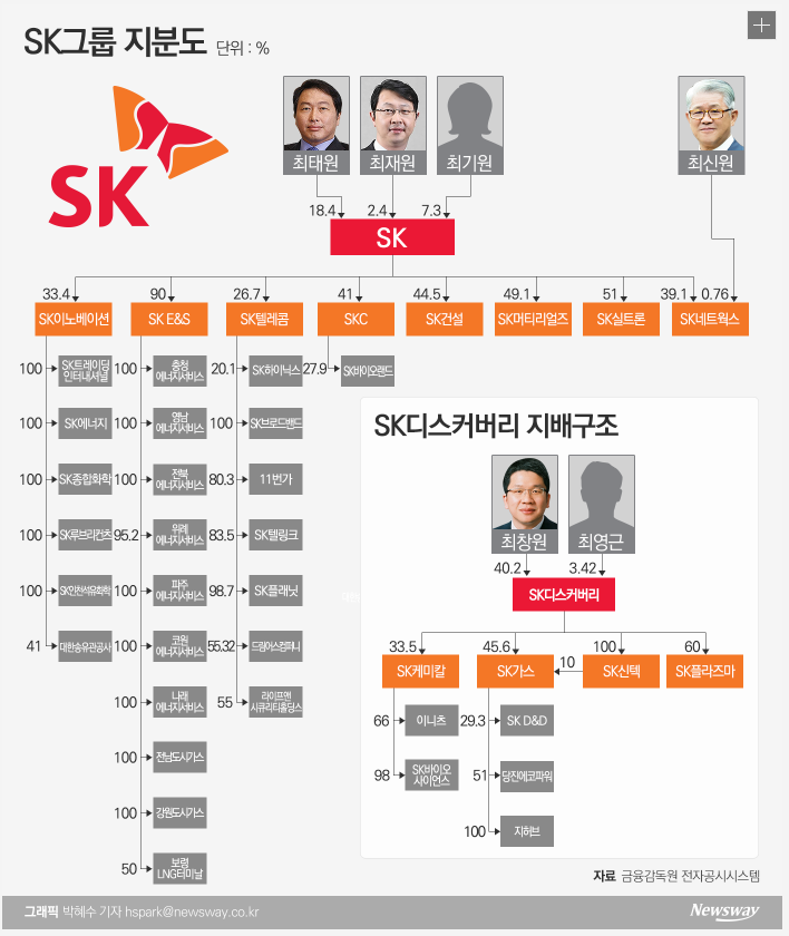 SK그룹은 1953년 섬유회사 선경직물로 출발해 화학, 에너지, 통신, 건설 등에서 국내 대표기업으로 성장한 대기업집단이다. 올해 6월 말 기준 SK를 중