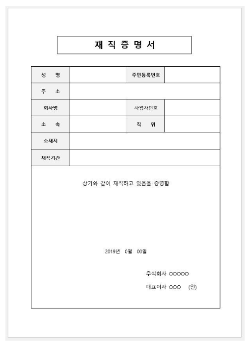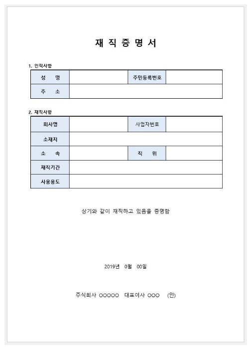1) 재직 중 사용하는 재직증명서 : 금융기관 제출용, 관공서 제출용, 회사 제출용