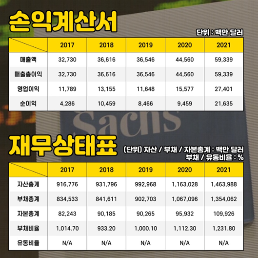 다음으로 2017년부터 2021년까지 골드만삭스의 5년 실적과 주가 변화를 살펴보겠습니다.