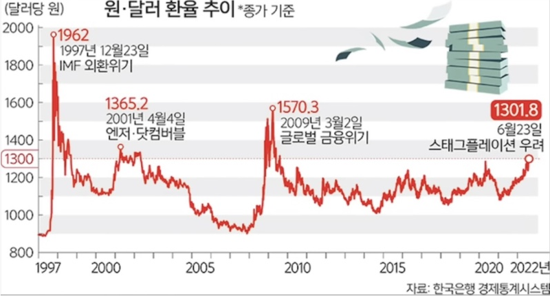 그러나 원/달러 환율은 2020년 3월 코로나19 사태로 급등한 이후 회복된 것으로 보이다가 2022년 우크라이나 위기, 높은 인플레이션 우려, 미국 연준의 긴축 등으로 계속해서 상승세를 보이고 있습니다.