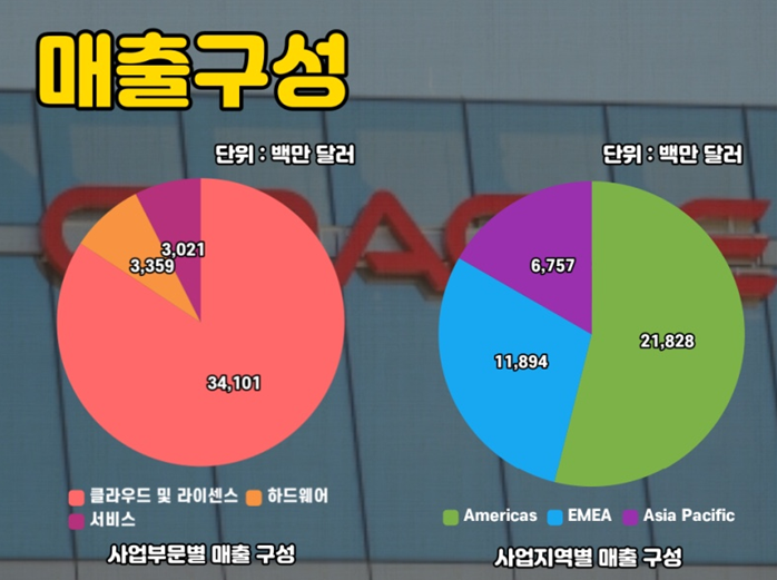 이번 포스팅에서는 오라클의 설립과 성장 과정을 살펴본 뒤 사업 부문과 지역별 매출 구성, 5년 동안의 실적과 주가, 경쟁사, 배당 정보에 대해 알아보는 시간을 가져보도록 하겠습니다. 그럼 시작하겠습니다.