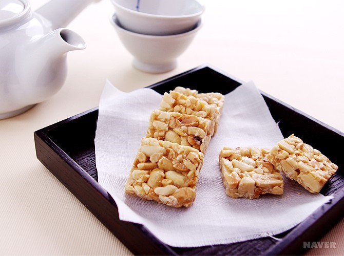 ② 땅콩강정 : 땅콩의 껍질을 벗기 뒤 프라이팬에 식용유를 두르고 땅콩을 볶아주세요. 볶은 땅콩을 다져 주시고 볶은 프라이팬에 설탕, 물엿, 등을 넣고 이 액체들이 녹을 때까지 가열을 해줍니다. 그리고 땅콩을 넣으면서 적어주시고 땅콩강정을 식힌 후 먹을 크기로 잘라줍니다.