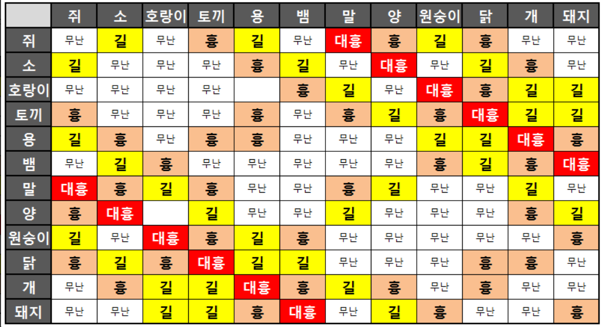 그렇듯이 오늘은 본인과 관련된 띠별 궁합이 어떤지,