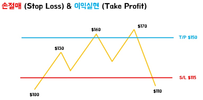 손절매와 이익실현은 변동 가능성이 있는 경우 주문할 때 두는 안전 장치로 생각할 수 있습니다.