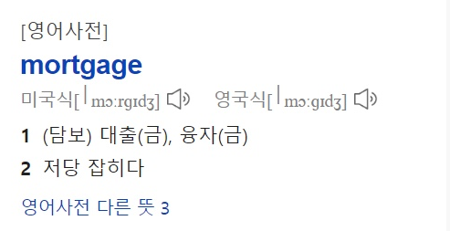한글이나 한자로 알아듣는 사람이 많은데 모기지는 영어로 모기지(mortgage)입니다.