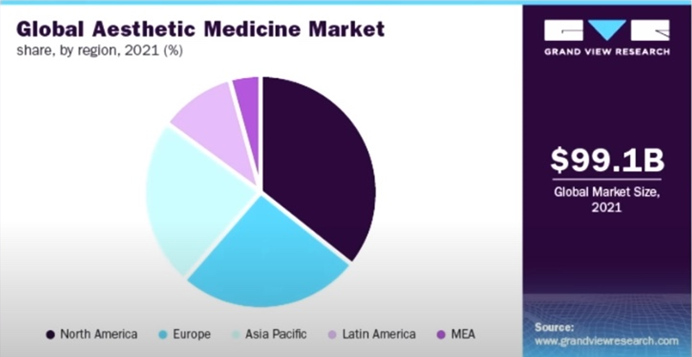 위 데이터는 2021년 미용의학 관련 글로벌 시장 점유율입니다.