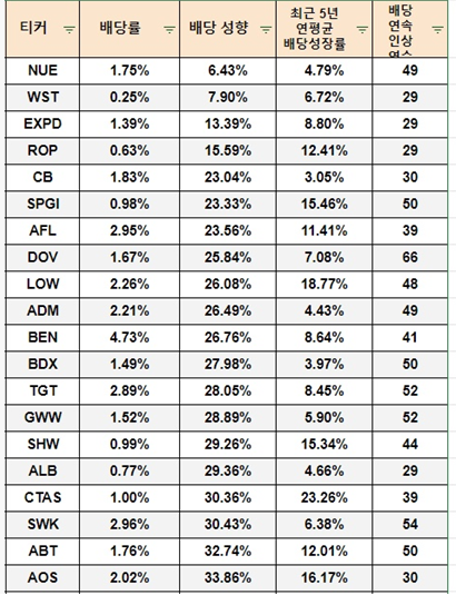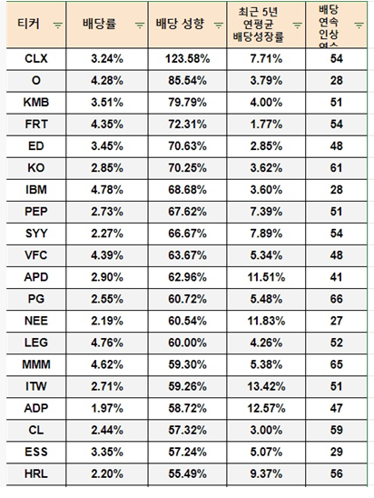 이렇게 해서 25년 이상 연속 배당금을 올려온 배당 귀족주에 대해 알아보았습니다.