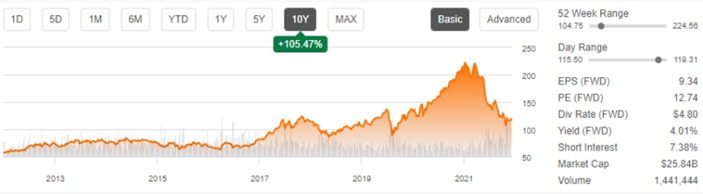 추천 종목의 절반가량이 올해 천연가스·원유 등 연료비 급등의 수혜를 입은 유틸리티·에너지주였다. 미국 내 가장 큰 전력 공급 업체 중 하나인 아메리칸 일렉트릭 파워 컴퍼니(AEP)를(AEP) 비롯해 전기·천연가스 등을 공급하는 유틸리티 기업인 DTE에너지 컴퍼니(DTE),셈프라에너지(SRE), 나이 소스(NI)등이 최근까지 꾸준히 배당금을 인상했고 올해도 배당금 인상이 유력한 기업들로 꼽혔다. 또 석유 정제 기업인 필립스 66(PSX),66(PSX), 발레로 에너지(VLO),데본에너지(DVN)와 천연가스 운송 기업인 윌리엄스 컴퍼니스(WMB)(WMB) 등은 배당수익률이 4%를 넘나드는 고배당주로 주목받았다.