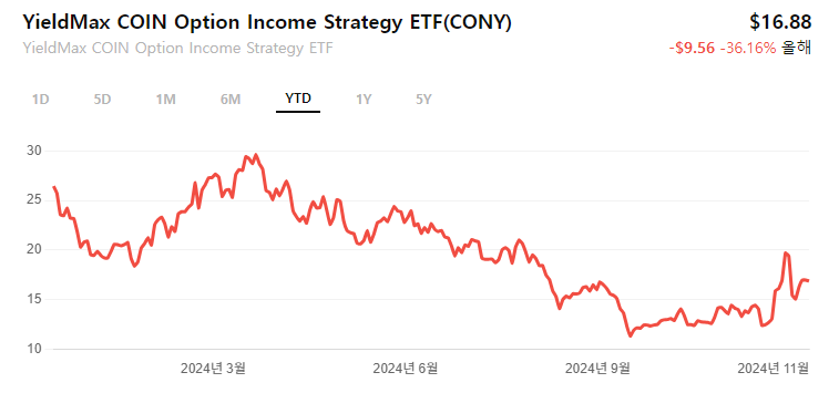 - CONY: Coinbase의 주식에 커버드콜 전략을 적용하여 수익을 추구하는 ETF입니다. 2023년 8월에 상장되었으며, 매월 배당금을 지급합니다.