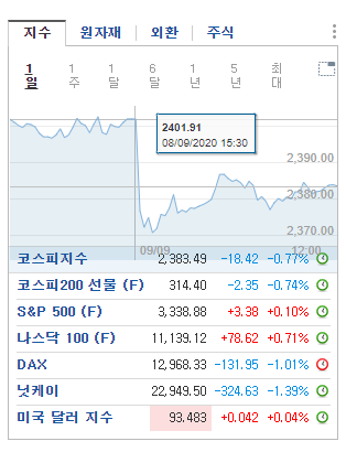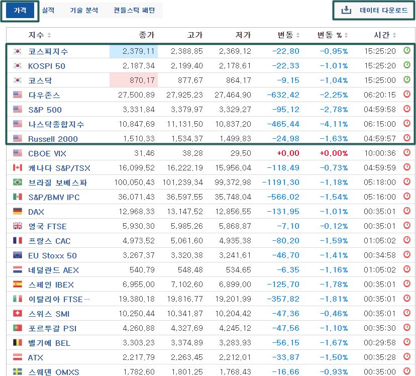 해외 지수 영향을 많이 받는 우리나라 지수를 제대로 알려면 수시로 확인해보는 게 좋겠지요?