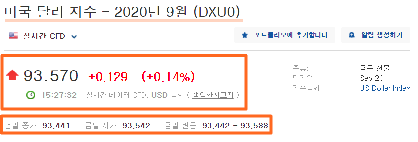 상단 탭 : 시장 > 외환 > 미국 달러 지수 탭에서 쉽게 확인이 가능합니다.