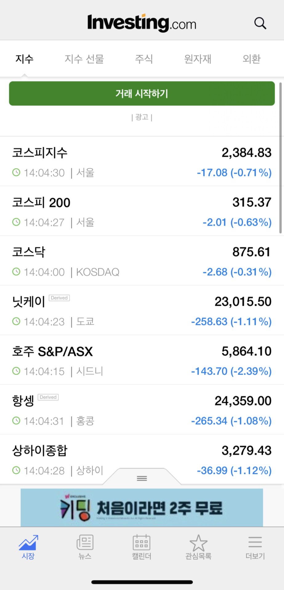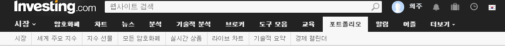 제가 인베스팅에 들어가면 제일 먼저 확인하는 탭입니다.