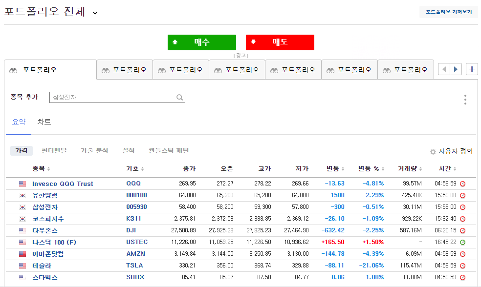 관심 있는 종목들을 한눈에 뙇 확인할 수 있어 시간이 없는 저에게 참 편리한 툴입니다!!!