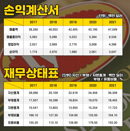 지난 5년간 매출과 영업이익 모두 꾸준한 매출 성장을 보였습니다.