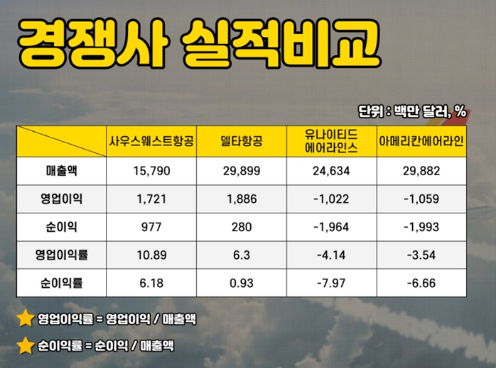 이렇게 해서 미국의 1위 저가 항공사 기업인 사우스웨스트 항공에 대해 알아보았습니다.