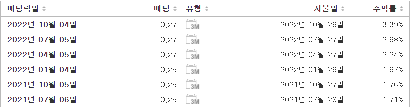 * 배당 지급일(PAYMENT DATE) : 배당이 실제 주주들에게 지급되는 날입니다.