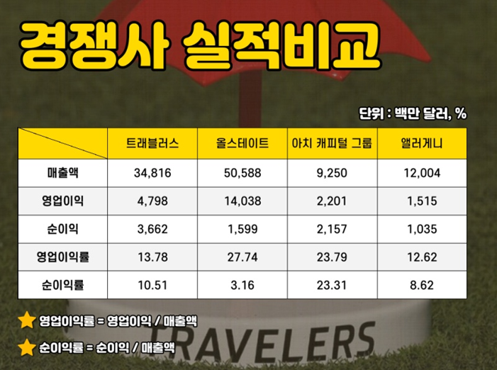 이렇게 해서 미국의 2위 보험사인 트래블러스 컴퍼니에 대해 알아보았습니다.