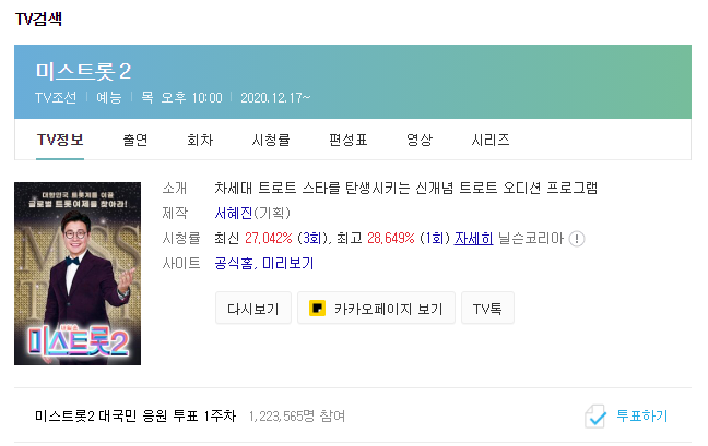 다음 검색창에서 미스트롯2를 검색하시면 상단에 바로 투표배너가 나옵니다.