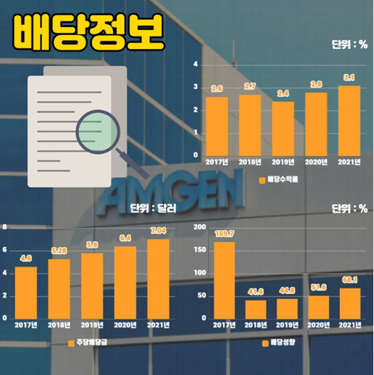 이 포스팅에서는 암젠의 회사 소개, 사업부 및 지역별 매출 구성, 2021년까지의 5개년 실적 및 주가, 경쟁사 및 배당 정보를 살펴보는 시간을 가져보려 합니다.