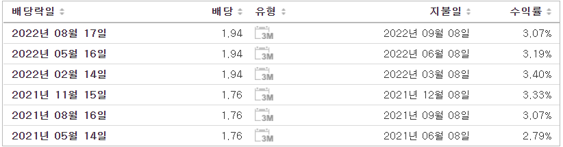* 배당 지급일(PAYMENT DATE) : 배당이 실제 주주들에게 지급되는 날입니다.