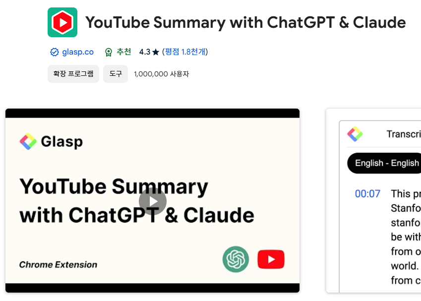 YouTube Summary with ChatGPT & Claude - Chrome 웹 스토어