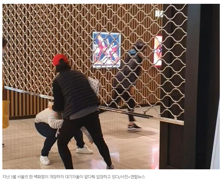 :전국 유명 백화점에서 개장 전부터 줄을서고 매장 오픈시간에 문이 열리면 매장으로 뛰어들어가는 행위
