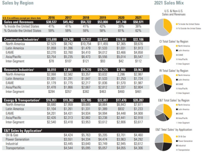 캐터필러는 세계 최고 규모의 광산, 건설 장비 등 중장비와 가스 터번을 생산하는 회사입니다.