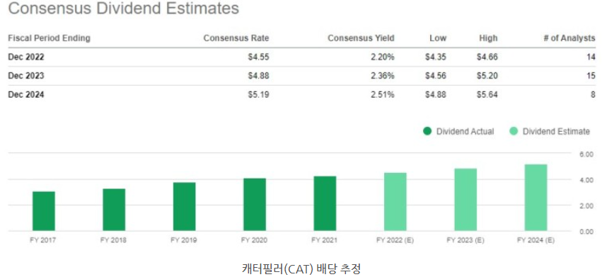 7월 배당 예정 기업인 캐터필러(CAT) 분석