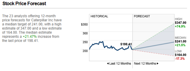 23명의 애널리스트들이 향후 1년간 캐터필러의 주가를 예측했습니다.