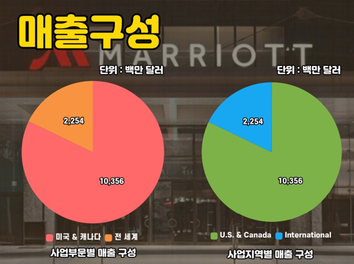 먼저 메리어트 인터내셔널의 사업부별, 지역별 매출 내역을 살펴보겠습니다.