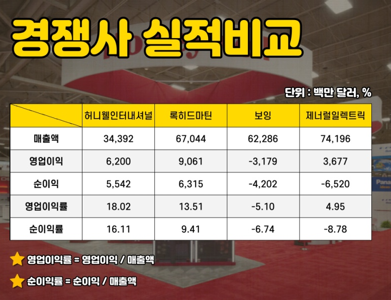 Honeywell International의 경쟁업체에는 록히드 마틴, 보잉 및 제너럴 일렉트릭이 있습니다.