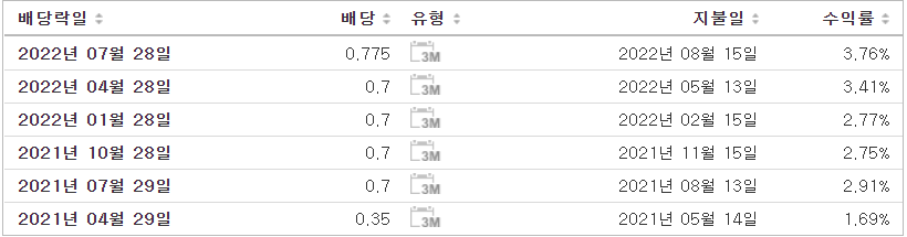 * 배당 지급일(PAYMENT DATE) : 배당이 실제 주주들에게 지급되는 날입니다.