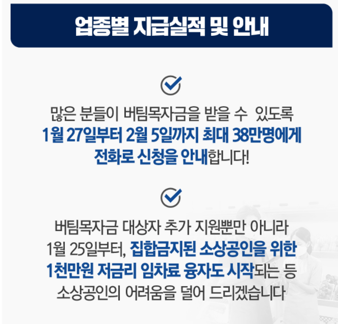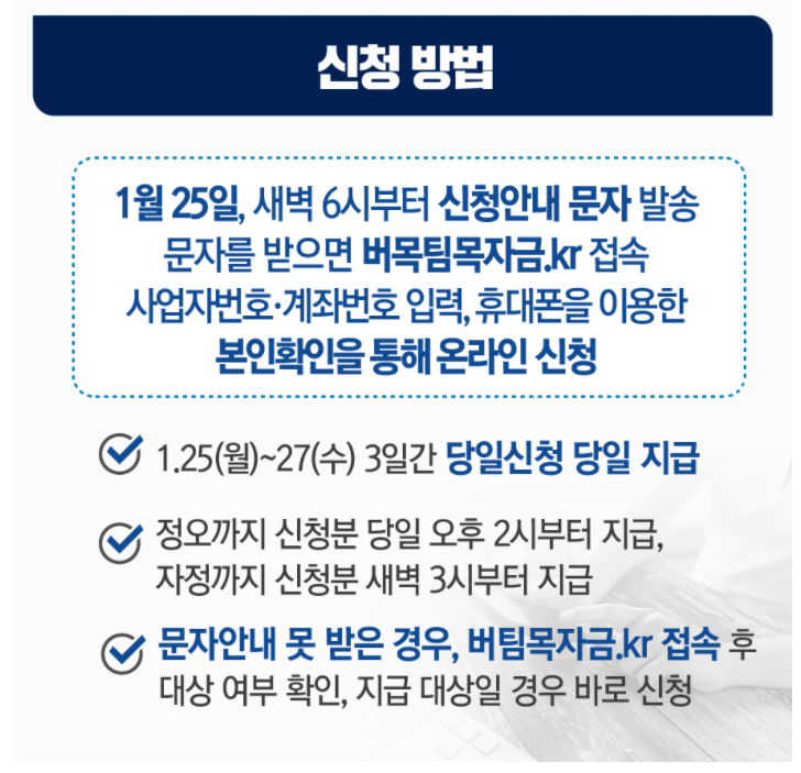 이번 지원대상자에는 1월 25일 새벽 6시부터 신청안내 문자를 발송합니다.
