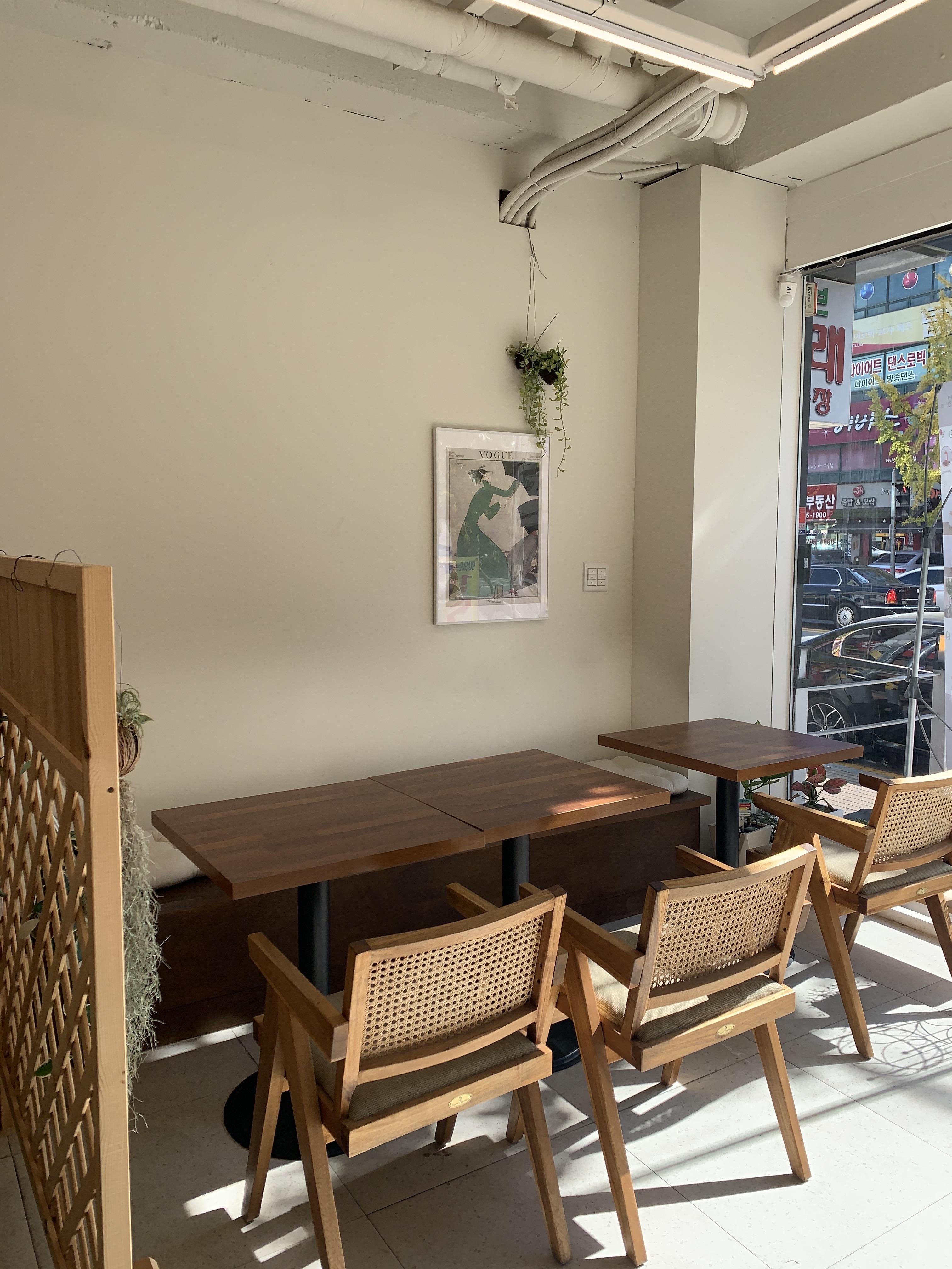 깔끔한 인테리어와 분위기에 어울리는 우드톤 테이블들이 즐비해있어 매장에 들어오면 심적으로 편안한 느낌을 줍니다.
