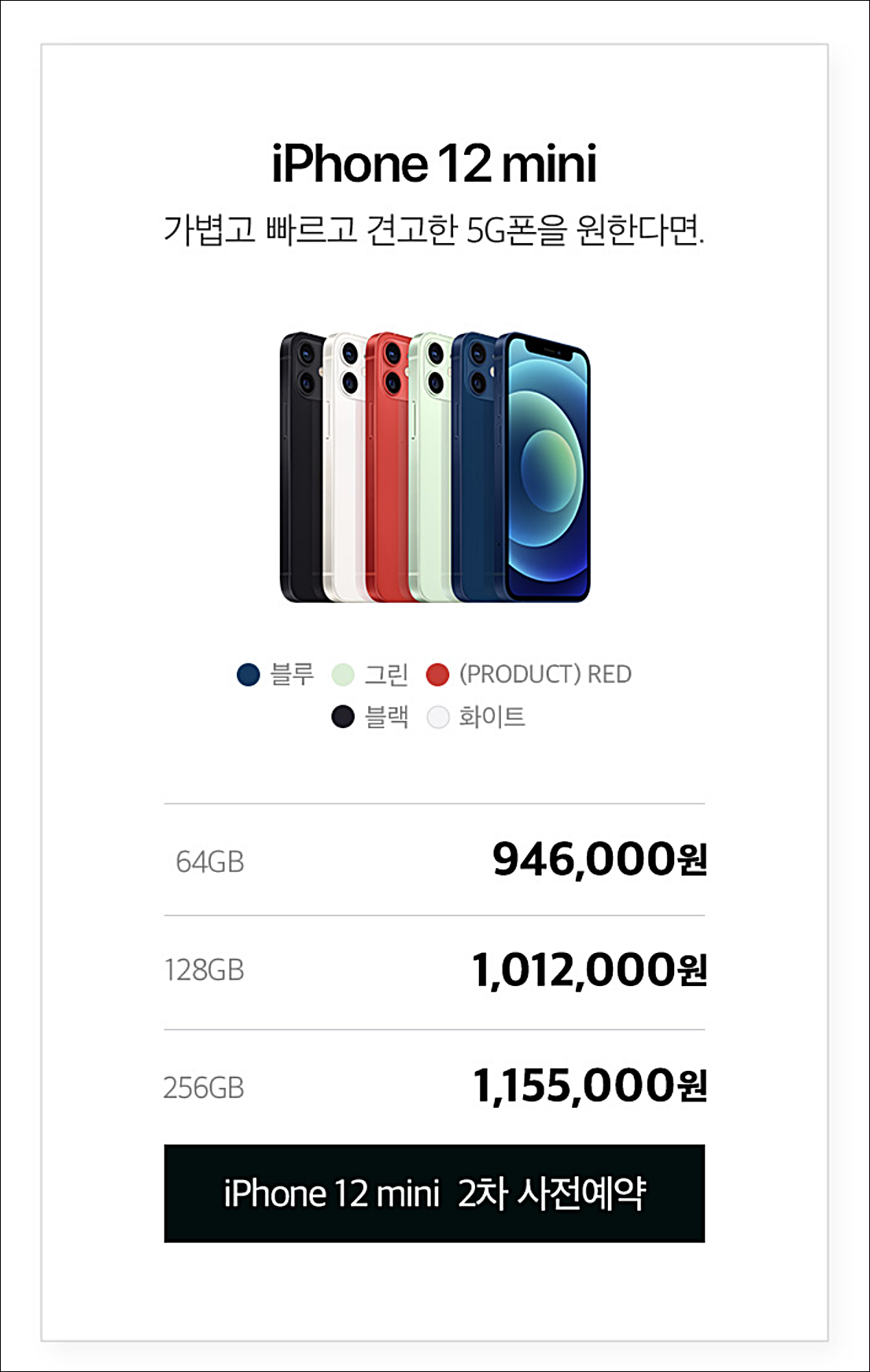 이전에 미리 아이폰 12 미니사전예약이 가능합니다.
