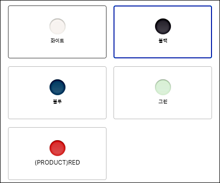 레드는 Product red로 색상을 선택 시 하단에 이 문구를 확인하실 수 있습니다.